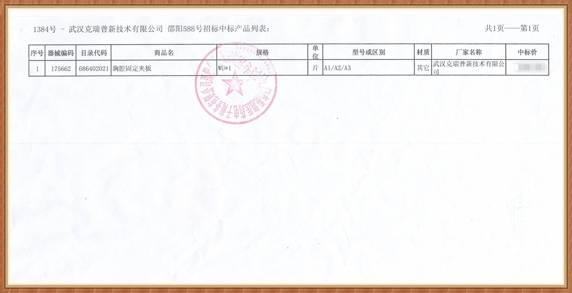 【湖南省邵陽市588號(hào)招標(biāo)】我們武漢克瑞普新技術(shù)有限公司的胸前固定夾板產(chǎn)品已經(jīng)在湖南省邵陽市588號(hào)招投標(biāo)中成功中標(biāo)產(chǎn)品展示,我們這次中標(biāo)的胸腔固定夾板產(chǎn)品型號(hào)分為A1/A2/A3三種型號(hào),此產(chǎn)品已在多家醫(yī)院和診所采取了臨床使用,產(chǎn)品反應(yīng)良好歡迎其他的醫(yī)院以及經(jīng)銷商等來采購(gòu)。