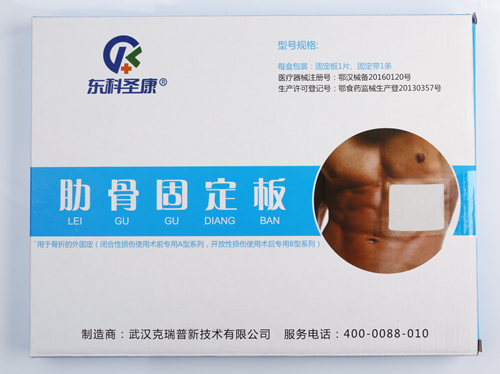 東科圣康品牌的肋骨固定板是由高分子納米材料、記憶鋁合金板、多頭胸背部肋骨固定帶等組成,具有結構新,重量輕,舒適度好,使用前無需加熱、易塑形、操作簡單方便;康復期間活動不受限,可沐浴等特點,該產品即開即用手掰塑形,與身體的合體性好,剛性適中外固定胸廓,牢度滿足臨床需求,不限制呼吸、咳嗽、運動;產品表面采用低敏性材料,同時具有透氣性和防水性,患者康復期間可沐浴,可免拆拍X光復檢。
