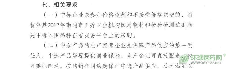值得一提的是,在基礎(chǔ)談判價(jià)格申報(bào)階段,此前南通市的要求是如果過(guò)期不申報(bào)(截止到7月19日),將暫停其2017年南通市醫(yī)療衛(wèi)生機(jī)構(gòu)醫(yī)用耗材和檢驗(yàn)檢測(cè)試劑相關(guān)中標(biāo)入圍品種在省平臺(tái)上的采購(gòu)。