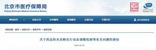 北京市醫(yī)療保障局《關(guān)于藥品陽光采購實行動態(tài)調(diào)整機制等有關(guān)問題的通知》