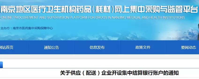 明確要求南京全市各定點(diǎn)醫(yī)藥機(jī)構(gòu)的醫(yī)用耗材及藥品收支,須納入市醫(yī)藥集中采購(gòu)保障中心設(shè)立的專門賬戶集中結(jié)算管理。按照全市統(tǒng)一部署和安排,請(qǐng)各企業(yè)對(duì)應(yīng)各自供貨的省、市屬三級(jí)醫(yī)療機(jī)構(gòu)結(jié)算賬戶銀行,于9月30日前開設(shè)醫(yī)用耗材及藥品收支專門賬戶、辦理結(jié)算系統(tǒng)專用CA。