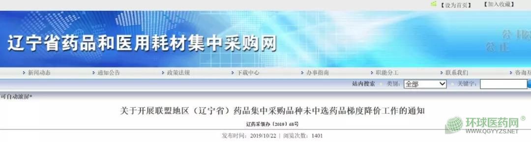 10月22日,遼寧省藥品和醫(yī)用耗材集中采購網(wǎng)發(fā)布《關(guān)于開展聯(lián)盟地區(qū)(遼寧?。┧幤芳胁少徠贩N未中選藥品梯度降價工作的通知》(簡稱《通知》),要求按照國家政策相關(guān)規(guī)定,就聯(lián)盟地區(qū)(遼寧?。┧幤芳胁少徠贩N未中選藥品展開梯度降價工作。